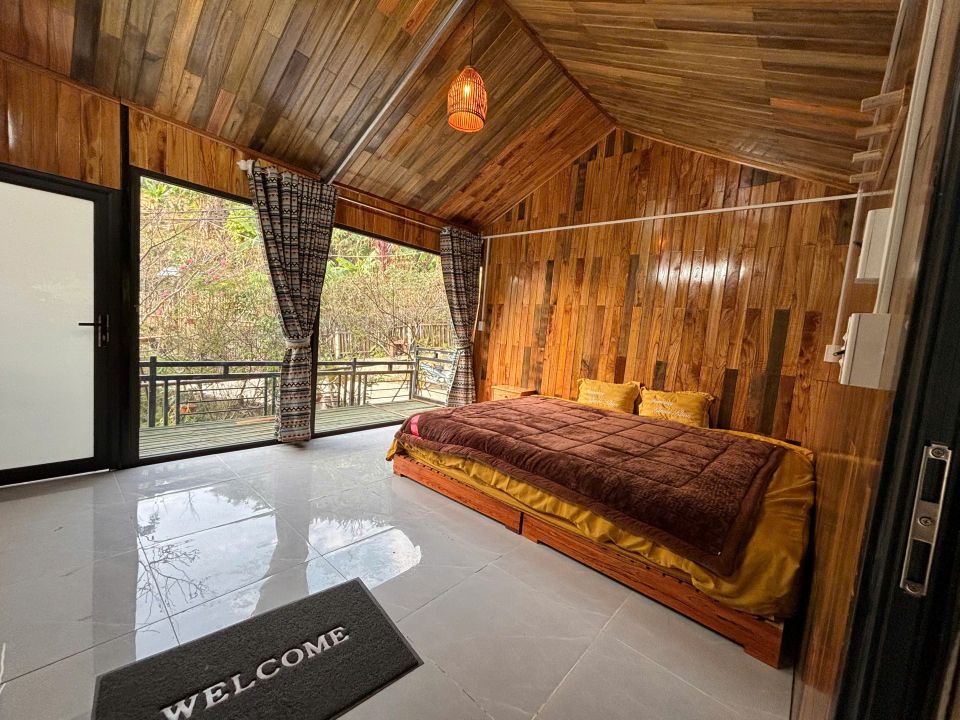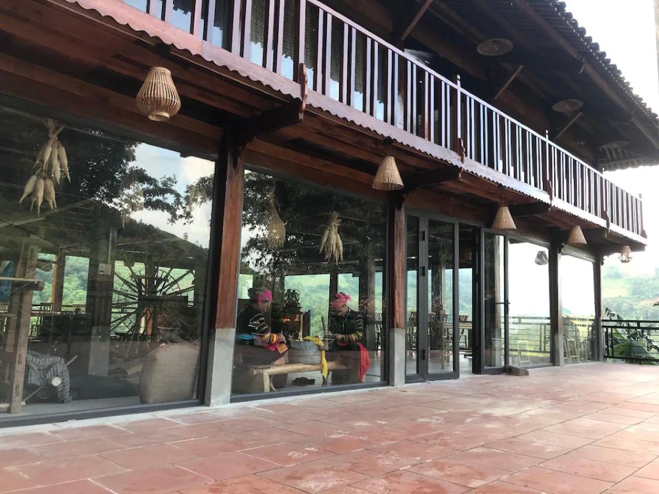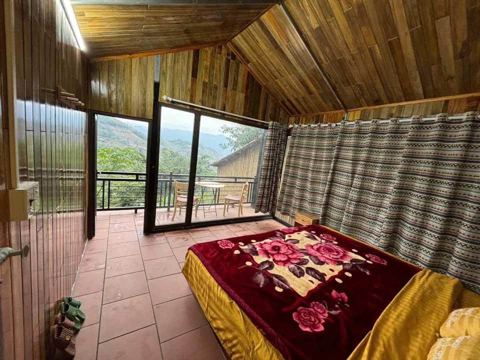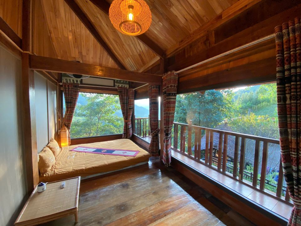 Chambre en maison sur pilotis avec vue sur les rizières