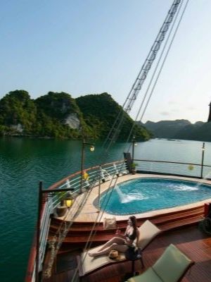 Notre coup de coeur : très belle jonque de 18 cabines "Deluxe" et deux "Suite" à l'ambiance très chaleureuse. Les cabines (12,5 m2 et 16,5m2 pour la VIP) disposent de lits jumeaux ou d'un lit double, d'une salle de bain avec douche, d'une climatisation, et d'une large fenêtre d'où vous admirerez les paysages. Le dîner dans la salle de restaurant panoramique est un régal autant pour les yeux que les papilles. La jonque offre de nombreuses activités : kayak, snorkeling, cours de cuisine, de Tai Chi.